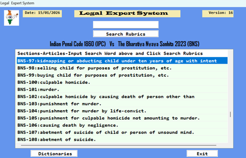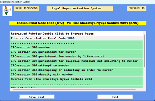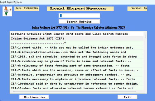 LAWS 2023 -Put Any word in IPC, CrPC or IEA, Get corresponding Words And Sections in BNS, BNSS or BSA.