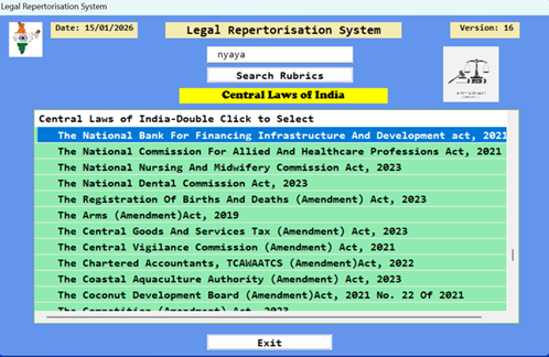 legislations are as per https://indiacode.nic.in/